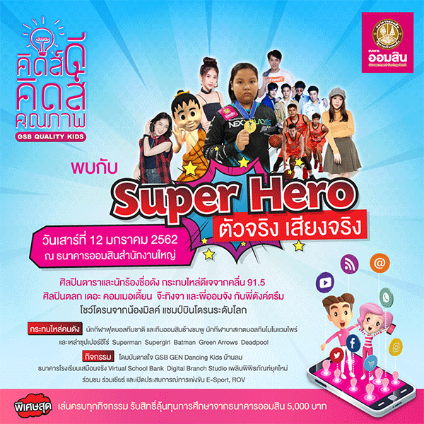พร้อมกันนี้ ธนาคารออมสิน ขอเชิญเที่ยวงานวันเด็กแห่งชาติประจำปี 2562 ณ ธนาคารออมสินสำนักงานใหญ่ ถ.พหลโยธิน ซึ่งปีนี้จัดขึ้นภายใต้แนวคิด "Quality People : คิดส์ดี คิดส์คุณภาพ" มีกิจกรรมที่เด็กๆ จะได้รับความสนุกไปพร้อมกับสาระที่นำไปพัฒนาเป็นเด็กที่มีคุณภาพในวันนี้ และเป็นผู้ใหญ่ที่ดีในอนาคต