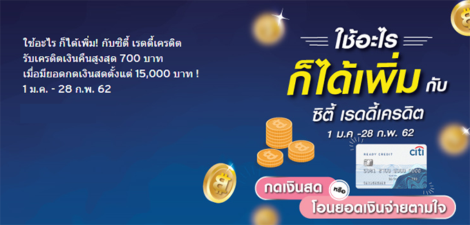 ใช้อะไร ก็ได้เพิ่ม กับซิตี้ เรดดี้เครดิต วันนี้ - 28 ก.พ. 62