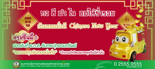 เงินฝาก Chinese New Year ปี 2562 จาก ธ.ก.ส. เงินออมมั่งมี แจกกระปุกออมทรัพย์ รถบรรทุกเงินทองมั่งคั่ง