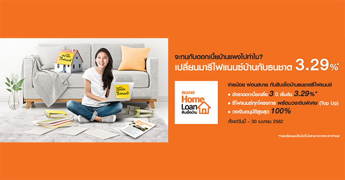 เปลี่ยนมารีไฟแนนซ์บ้านกับธนชาต จ่ายน้อย ผ่อนสบาย ด้วยดอกเบี้ยพิเศษ 3.29% ต่อปี