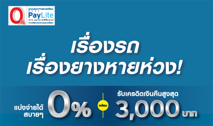 เรื่องรถ เรื่องยาง...รับสิทธิ์แบ่งจ่าย 0% พร้อมเครดิตเงินคืนสูงสุด 3,000 บาท จาก ซิตี้แบงก์
