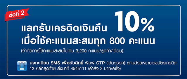 - ผู้ถือบัตรต้องลงทะเบียนผ่าน SMS มายังหมายเลขที่กำหนดไว้ในสื่อส่งเสริมการขายนี้ ตั้งแต่วันที่ 1 ม.ค. - 31 มี.ค. 62 เท่านั้น กรณีผู้ถือบัตรหลักหลายใบให้ลงทะเบียนเพียงครั้งเดียว (ค่าส่ง SMS 3 บาท/ครั้ง)
