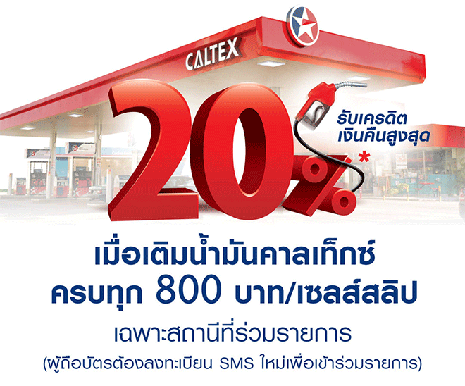 - จำกัดยอดใช้จ่ายผ่านบัตรเครดิตเพื่อรับเครดิตเงินคืนที่ปั๊มคาลเท็กซ์ไม่เกิน 3,200 บาท/ลูกค้า/เดือน