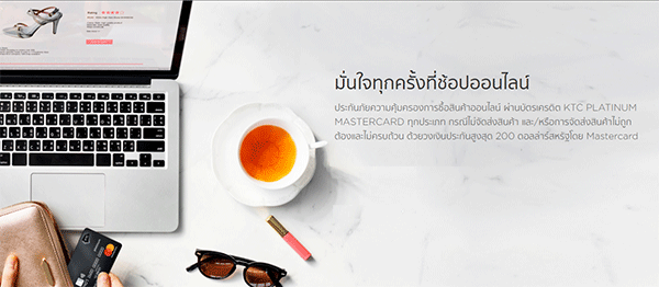 3. มั่นใจทุกครั้งที่ช้อปออนไลน์ กับบัตรเครดิต KTC MASTERCARD ทุกประเภท >> ประกันภัยความคุ้มครองการซื้อสินค้าออนไลน์ ผ่านบัตรเครดิต KTC WORLD REWARDS MASTERCARD ทุกประเภท กรณีไม่จัดส่งสินค้า และ/หรือการจัดส่งสินค้าไม่ถูกต้องและไม่ครบถ้วน ด้วยวงเงินประกันสูงสุด 200 ดอลล่าร์สหรัฐ โดย Mastercard