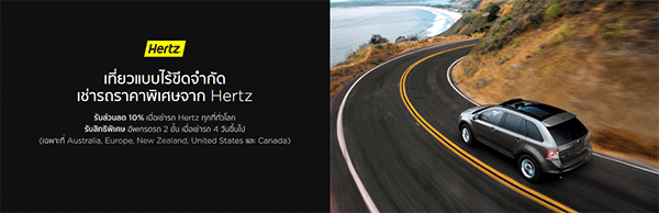 4. เที่ยวแบบไร้ขีดจำกัด เช่ารถราคาพิเศษจาก Hertz >> - รับส่วนลด 10% เมื่อเช่ารถ Hertz ทุกที่ทั่วโลก สำหรับบัตรเครดิต KTC MASTERCARD ทุกประเภท