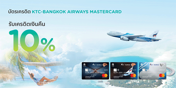 5. โปรโมชั่นจองบัตรโดยสารสายการบินบางกอกแอร์เวยส์ ด้วยบัตรเครดิต KTC-BANGKOK AIRWAYS >> รับเครดิตเงินคืน 10% เมื่อจองบัตรโดยสารผ่าน www.bangkokair.com ด้วยบัตรเครดิต KTC-BANGKOK AIRWAYS MASTERCARD