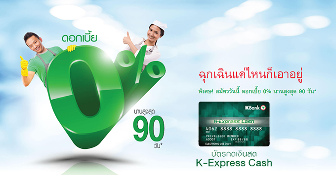 เงินด่วนพร้อมใช้ บัตรกดเงินสด K-Express Cash ดอกเบี้ย 0% นานสูงสุด 90 วัน