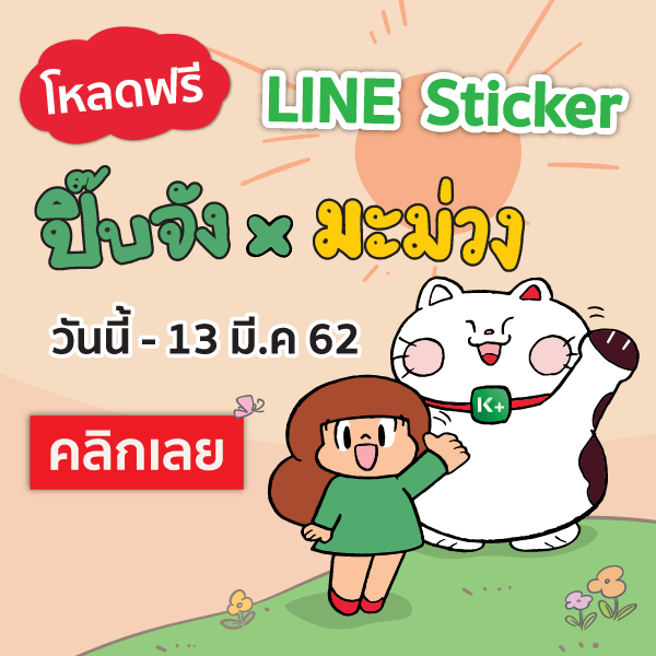 กดเพิ่มเพื่อน KBank Live รับสติกเกอร์ ปิ๊บจังxน้องมะม่วง ฟรี! ตั้งแต่วันนี้ถึง 13 มีนาคม 2562