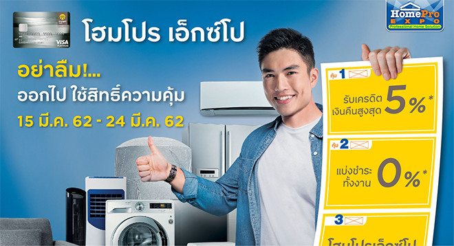 อย่าลืม...ออกไปใช้สิทธิ์ความคุ้ม ในงานโฮมโปร เอ๊กซ์โป กับบัตรเครดิตกรุงศรี บัตรเครดิต เอไอเอ วีซ่า และบัตรเครดิต สยามทาคาชิมายะ