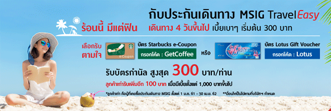 โปรโมชั่นพิเศษ...ร้อนนี้ มีแต่ฟิน กับ ประกันเดินทาง MSIG Travel Easy