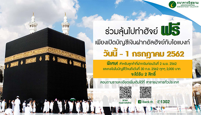 ร่วมลุ้นรับแพ็กเกจเดินทางไปประกอบพิธีฮัจย์ ฟรี! เพียงเปิดบัญชีเงินฝากอัลฮัจย์กับไอแบงก์