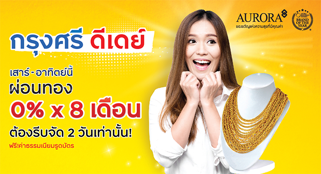 2 วันเท่านั้น!! กรุงศรี ดีเดย์ บัตรเครดิตในเครือกรุงศรี ผ่อนทองรูปพรรณที่ Aurora 0% นาน 8 เดือน