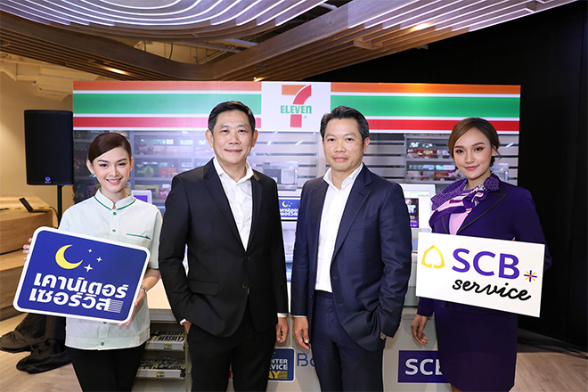 "ธนาคารไทยพาณิชย์" ผนึกกำลัง "ซีพี ออลล์" ประกาศความร่วมมือครั้งสำคัญ มุ่งสู่การเป็น Digital Financial Partnership นำเสนอบริการทางการเงินรูปแบบใหม่ให้กับลูกค้า เปิดตัว "SCB Service" (เอสซีบีเซอร์วิส) บริการด้านแบงก์กิ้งเอเย่นต์ของธนาคารไทยพาณิชย์ผ่านเคาน์เตอร์เซอร์วิสที่เซเว่นอีเลฟเว่นกว่า 11,000 สาขาทั่วประเทศ ให้บริการฝาก-ถอน เงินสดบัญชีเงินฝากไทยพาณิชย์ผ่านระบบดิจิทัลด้วย QR Code ในแอปพลิเคชัน SCB EASY ช่วยให้ลูกค้าที่มีความต้องการทำธุรกรรมเงินสดหลังเวลาทำการปกติ สามารถเข้าถึง "บริการธนาคาร" ได้อย่างสะดวกขึ้น ตลอด 24 ชั่วโมง