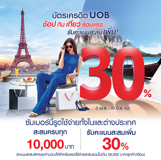 โปรโมชั่น บัตรเครดิตยูโอบี ช้อป กิน เที่ยว ร้อนแรง รับคะแนนสะสมเพิ่ม 30%