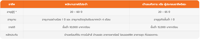 *อายุ และระยะเวลาผ่อนชำระสูงสุด ต้องเป็นไปตามเงื่อนไขอายุลูกค้า ณ วันสิ้นสุดสัญญาสินเชื่อ
