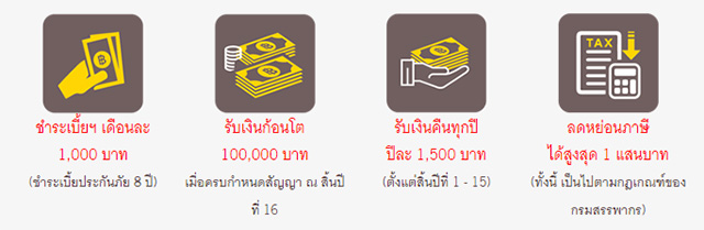 ประกันชีวิตกรุงศรีเริ่มง่าย ได้ฟินฟิน 16/8 เก็บเงินง่ายเพียงเดือนละ 1,000 บาท (ชำระเบี้ย 8 ปี) รับเงินคืนก้อนใหญ่ 100,000 บาท (ครบสัญญาปีที่ 16)