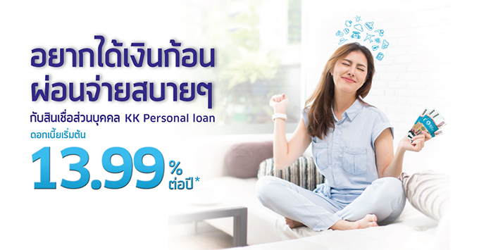 อยากได้เงินก้อน ผ่อนจ่ายสบายๆ กับสินเชื่อส่วนบุคคล KK Personal loan ดอกเบี้ยเริ่มต้น 13.99% ต่อปี