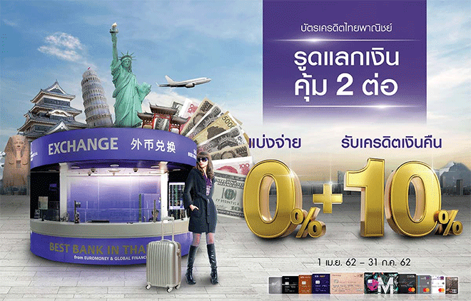 บัตรเครดิตไทยพาณิชย์ รูดแลกเงินคุ้ม 2 ต่อ แบ่งจ่าย 0% นานสูงสุด 4 เดือน* + รับเครดิตเงินคืน 10%*