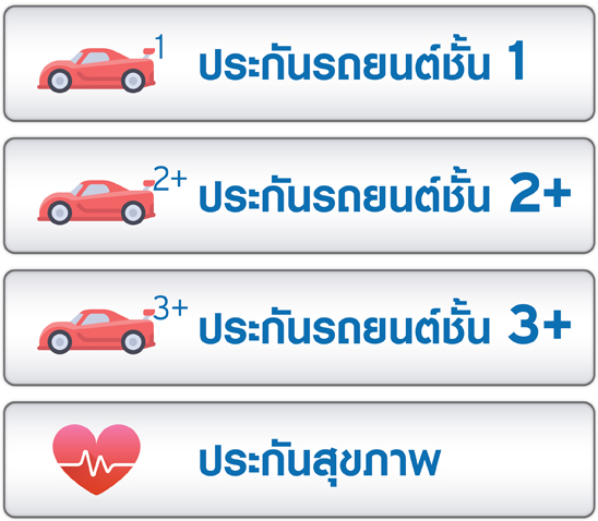 - เฉพาะประกันรถยนต์ชั้น 1, ประกันรถยนต์ 2+, ประกันรถยนต์ 3+ และประกันสุขภาพที่ร่วมรายการและโปรดสอบถามข้อมูลเพิ่มเติม ณ จุดขายก่อนทำรายการ