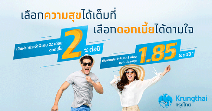 บัญชีเงินฝากประจำพิเศษ จาก ธ.กรุงไทย เป็นบัญชีสำหรับลูกค้าบุคคลธรรมดา นิติบุคคลทั่วไป, นิติบุคคลที่ไม่แสวงหากำไร, ราชการ, รัฐวิสาหกิจ, สถาบันการเงิน, กองทุน และบริษัทประกัน มีให้เลือก 2 ช่วงระยะเวลาฝาก คือ 8 และ 22 เดือน พร้อมให้คุณรับดอกเบี้ยสูงทุกเดือน