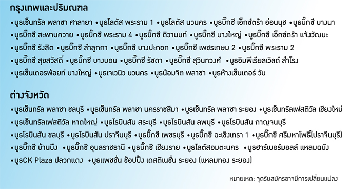 รายชื่อบูธ ที่ร่วมรายการดังนี้