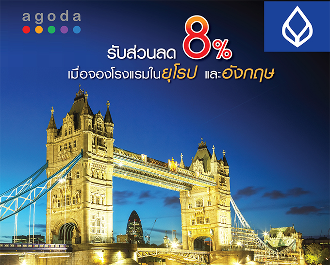 รับส่วนลด 8% เมื่อจองโรงแรมในยุโรป และอังกฤษ ผ่าน agoda ด้วยบัตรเครดิตธนาคารกรุงเทพ