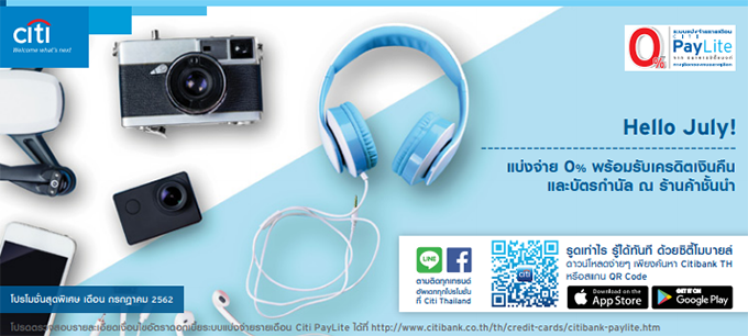 โปรโมชั่นสุดพิเศษ กรกฎาคม 62 รับสิทธิแบ่งจ่าย 0% พร้อมรับเครดิตเงินคืน และบัตรกำนัล จากบัตรซิตี้แบงก์