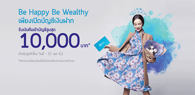 Be Happy Be Wealthy เพียงเปิดบัญชีเงินฝาก ธ.เกียรตินาคิน รับเงินคืนเข้าบัญชีสูงสุด 10,000 บาท