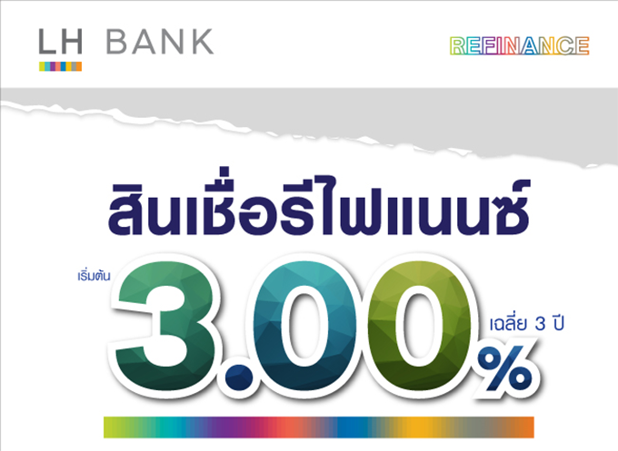 สินเชื่อบ้านรีไฟแนนซ์ ดอกเบี้ยเริ่มต้น 3.00% เฉลี่ย 3 ปี ฟรี! ค่าประเมินหลักประกัน