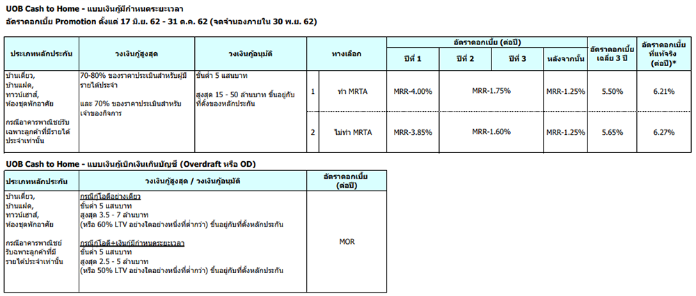 ยูโอบี แคชทูโฮม - วงเงินสูงสุด 50 ล้านบาท อนุมัติด่วนภายใน 3 วันทำการ