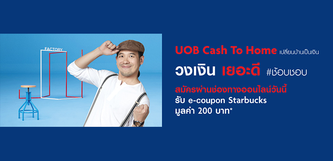 สมัคร UOB Cash To Home ผ่านช่องทางออนไลน์วันนี้รับ e-coupon Starbucks มูลค่า 200 บาท