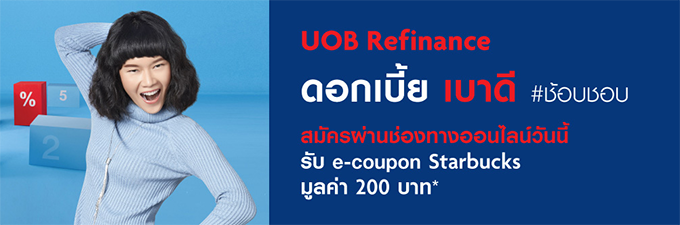 รับ e-coupon Starbucks มูลค่า 200 บาท เมื่อสมัครสินเชื่อ UOB Refinance ผ่านช่องทางออนไลน์