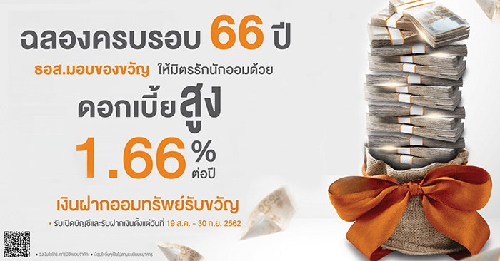 ช่วงเวลาที่เปิดรับฝาก : ตั้งแต่วันที่ 19 ส.ค. 62 ถึง 30 ก.ย. 62