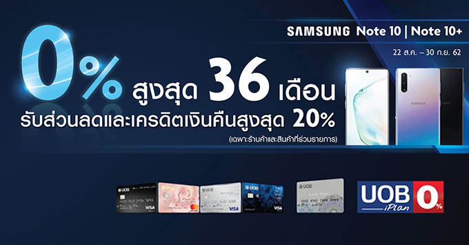 สุดคุ้มกับ Samsung Galaxy Note 10 และ Note 10 Plus เมื่อผ่อนผ่านบัตรยูโอบี 0% นานสูงสุด 36 เดือน