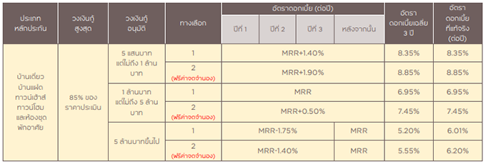 สำหรับหลักประกันประเภทบ้านเดี่ยว บ้านแฝด