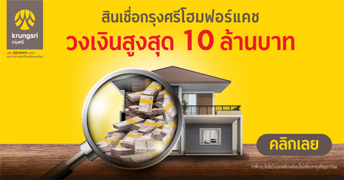 สมัครสินเชื่อกรุงศรีโฮมฟอร์แคชวันนี้...พิเศษ! รับดอกเบี้ยต่ำสุด 5.20% ต่อปี นาน 3 ปี