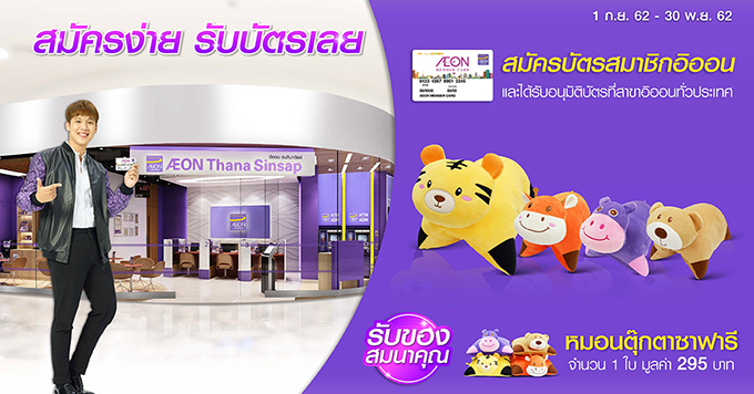 สมัครบัตรสมาชิกอิออนและได้รับอนุมัติ รับหมอนตุ๊กตาซาฟารี จำนวน 1 ใบ มูลค่า 295 บาท