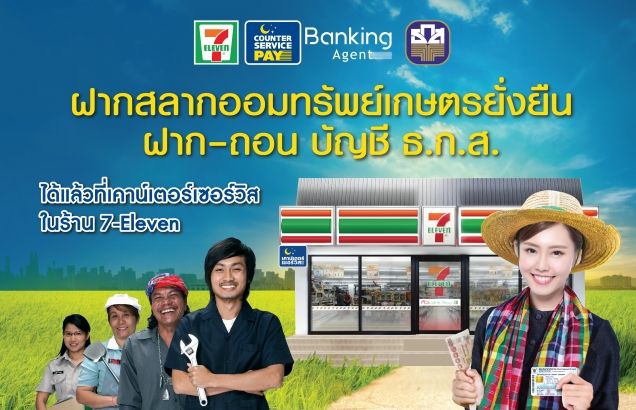 บริการใหม่!! ฝากสลากออมทรัพย์ เกษตรยั่งยืน ฝาก-ถอน บัญชี ธ.ก.ส. ชำระบิล ที่เคาน์เตอร์เซอร์วิส ในร้าน 7-Eleven ได้แล้ว