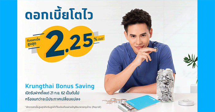 บัญชีเงินฝากออมทรัพย์ Krungthai Bonus Savings - ธนาคารกรุงไทย