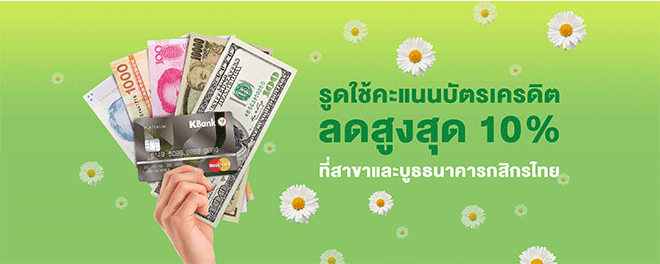 - ระดับบัตรเครดิตกสิกรไทยอื่นๆ สามารถใช้คะแนนแลกส่วนลด 8%