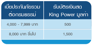 ต่อที่ 2 กรณีซื้อประกันภัยแบบรายปีรับเพิ่ม! บัตรเงินสด King Power