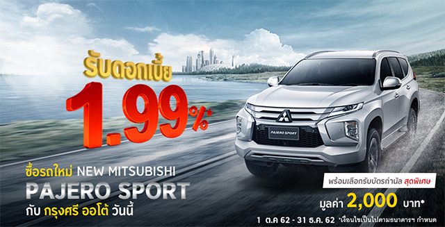 - อัตราดอกเบี้ย 1.89% พร้อมบัตรกำนัล สุดพิเศษมูลค่า 2,000 บาท สำหรับลูกค้าที่มีสำเนาใบคู่มือจดทะเบียน รถยนต์มิตซูบิชิ