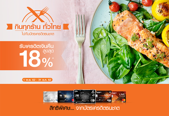 กินทุกร้าน ทั่วไทย ไปกับบัตรเครดิตธนชาต พร้อมรับเครดิตเงินคืนสูงสุด 18% *