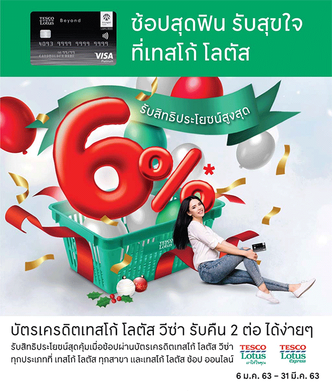 ช้อปสุดฟิน รับสุขใจ ที่เทสโก้ โลตัส ทุกสาขาและเทสโก้ โลตัส ช้อป ออนไลน์ รับสิทธิประโยชน์สูงสุด 6 %