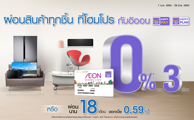 - โปรดตรวจสอบรายละเอียดเพิ่มเติม ณ จุดขาย หรือที่ www.aeon.co.th และสื่อประชาสัมพันธ์อื่นของบริษัทฯ