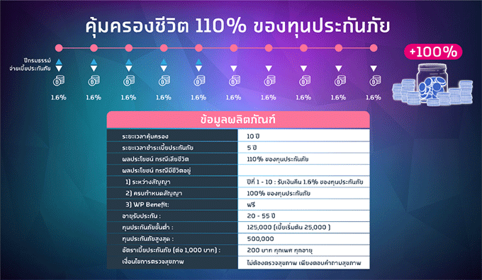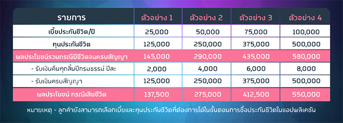 ตัวอย่างเบี้ยประกัน และผลประโยชน์ที่ได้รับ