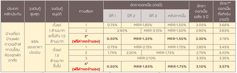 - ได้วงเงินกู้สูงสุด 95% ของราคาประเมิน