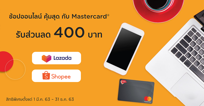 ช้อปออนไลน์ คุ้มสุด กับ Mastercard รับส่วนลด 400 บาท เมื่อช้อปด้วยบัตรเครดิต KTC MASTERCARD