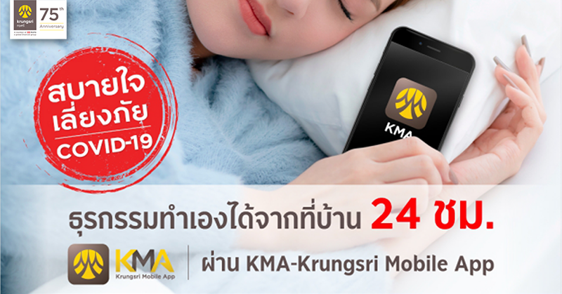 สบายใจเสี่ยงภัย COVID-19 ธุรกรรมทำเองได้จากที่บ้าน 24 ชม. ผ่าน KMA-Krungsri Mobile App