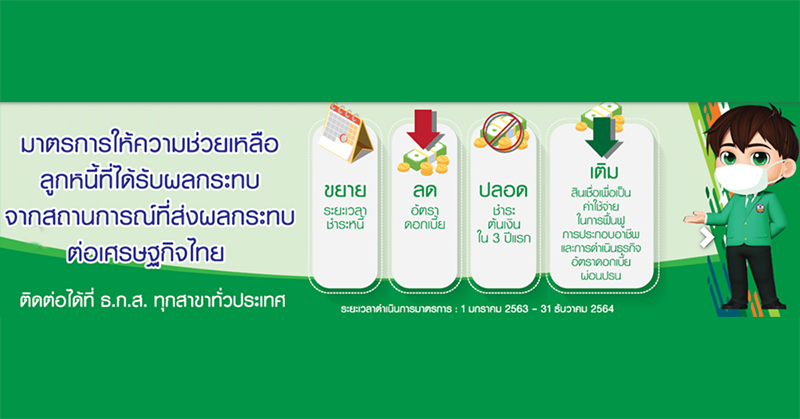 มาตรการให้ความช่วยเหลือลูกหนี้ที่ได้รับผลกระทบจากสถานการณ์ที่ส่งผลกระทบต่อเศรษฐกิจ จาก ธ.ก.ส.